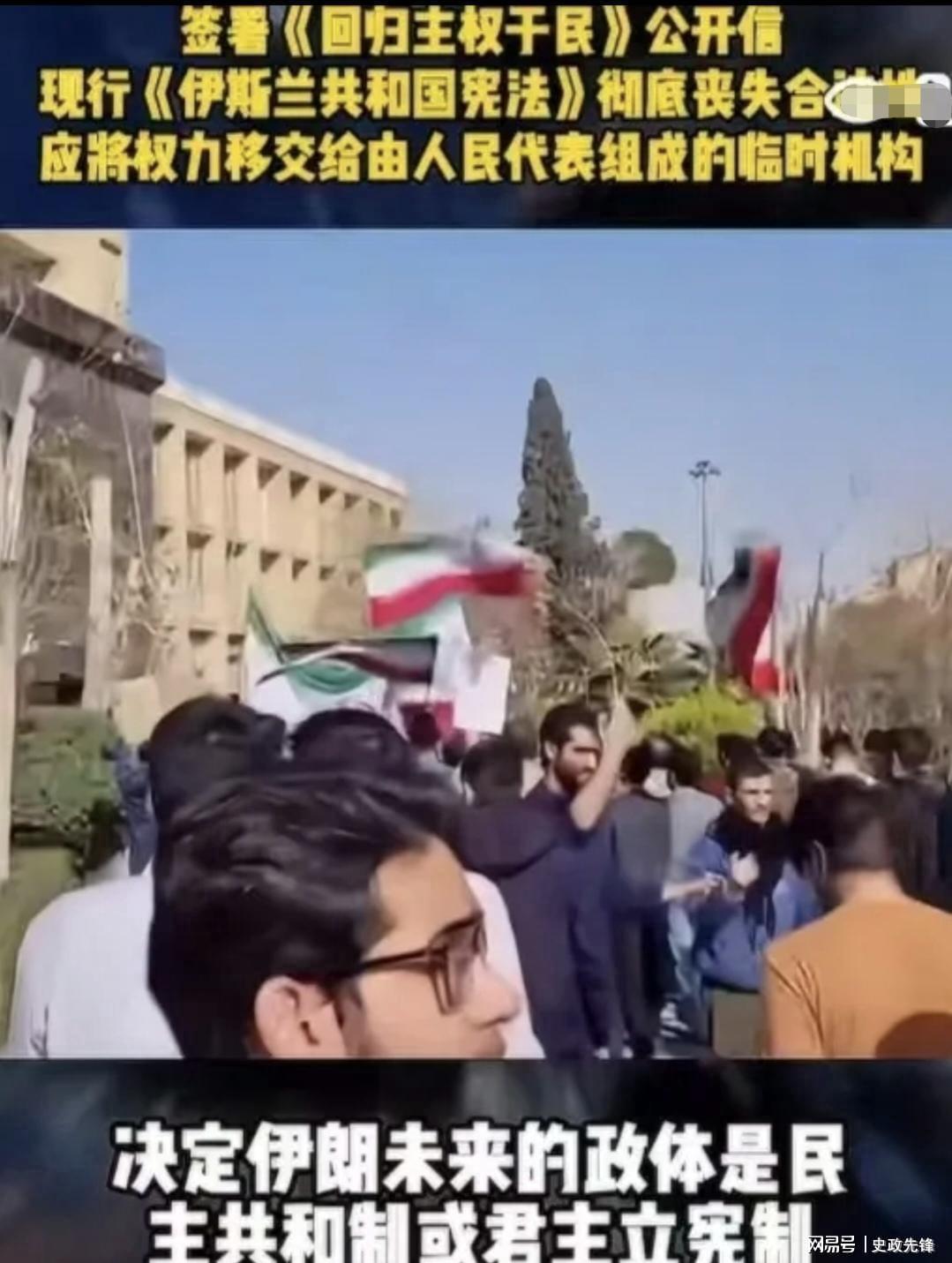 伊朗科技和文化精英们联手签署了要求现任政府《回归主权于民》的公开信,明确指出基于目前伊朗的动荡局势以及2025年~2026年教士集团对游行民众人权的严重践踏,现行《伊斯兰共和国宪法》已彻底丧失了合法性.……签名者呼吁成立临时小组、将权力移交给由人民代表组成的临时机构。声明首次指出支持流亡的皇太子礼萨.巴列维提出的民主过渡路线图,举行全民公投以决定伊朗的未来政体是民主共和制还是君主立宪制。